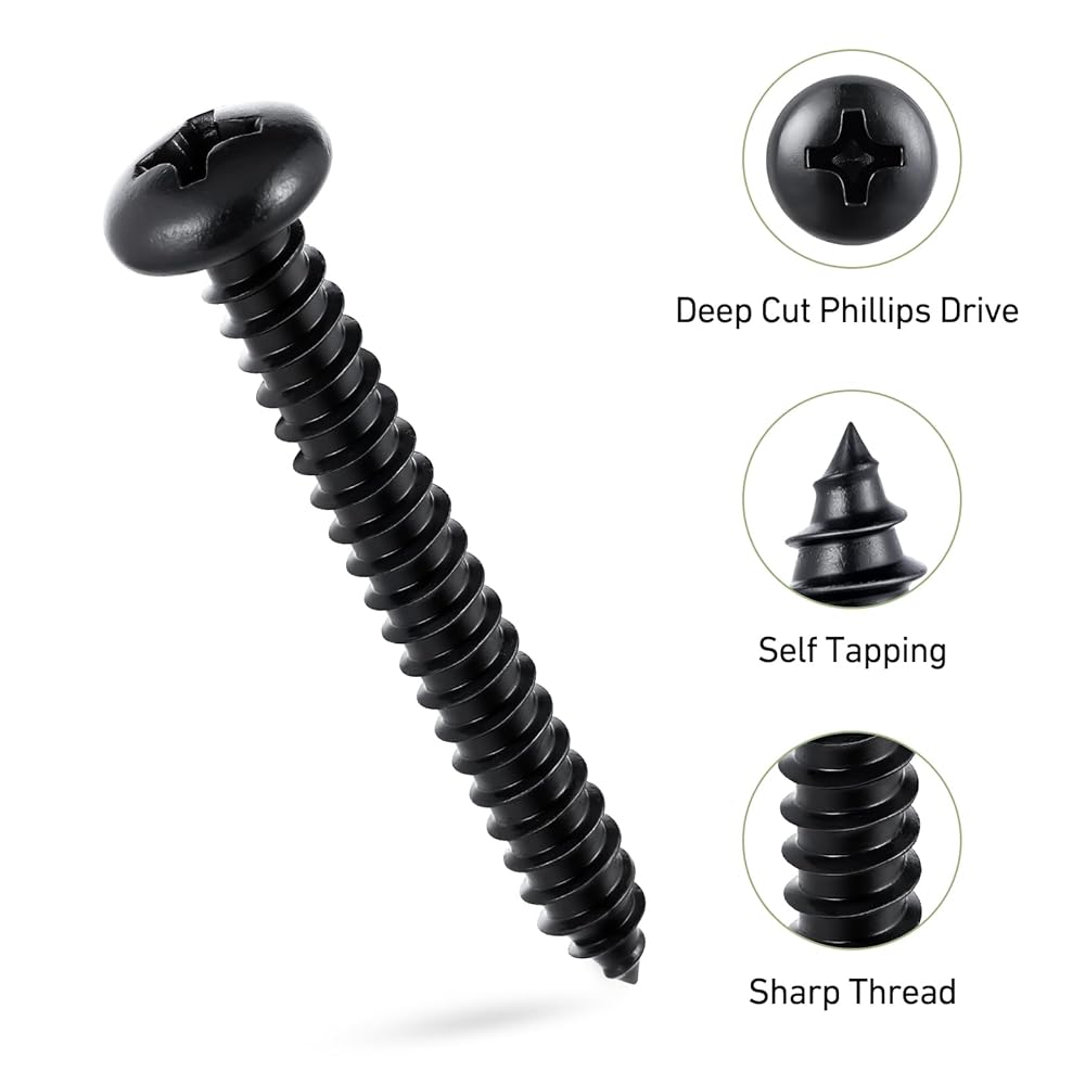 Premium Material: These pan head screws are crafted from 304 stainless steel with black oxide coating, which has superior corrosion resistance and anti-rust, provide a longer service life without stripping, deformation, or damage