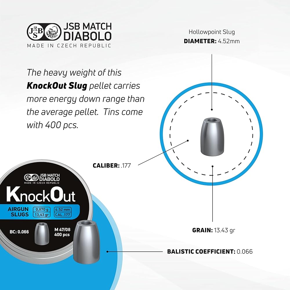 SPECIFICATIONS: 0.177 Caliber, 13.43 Grain, Hollowpoint Slug, 400 count