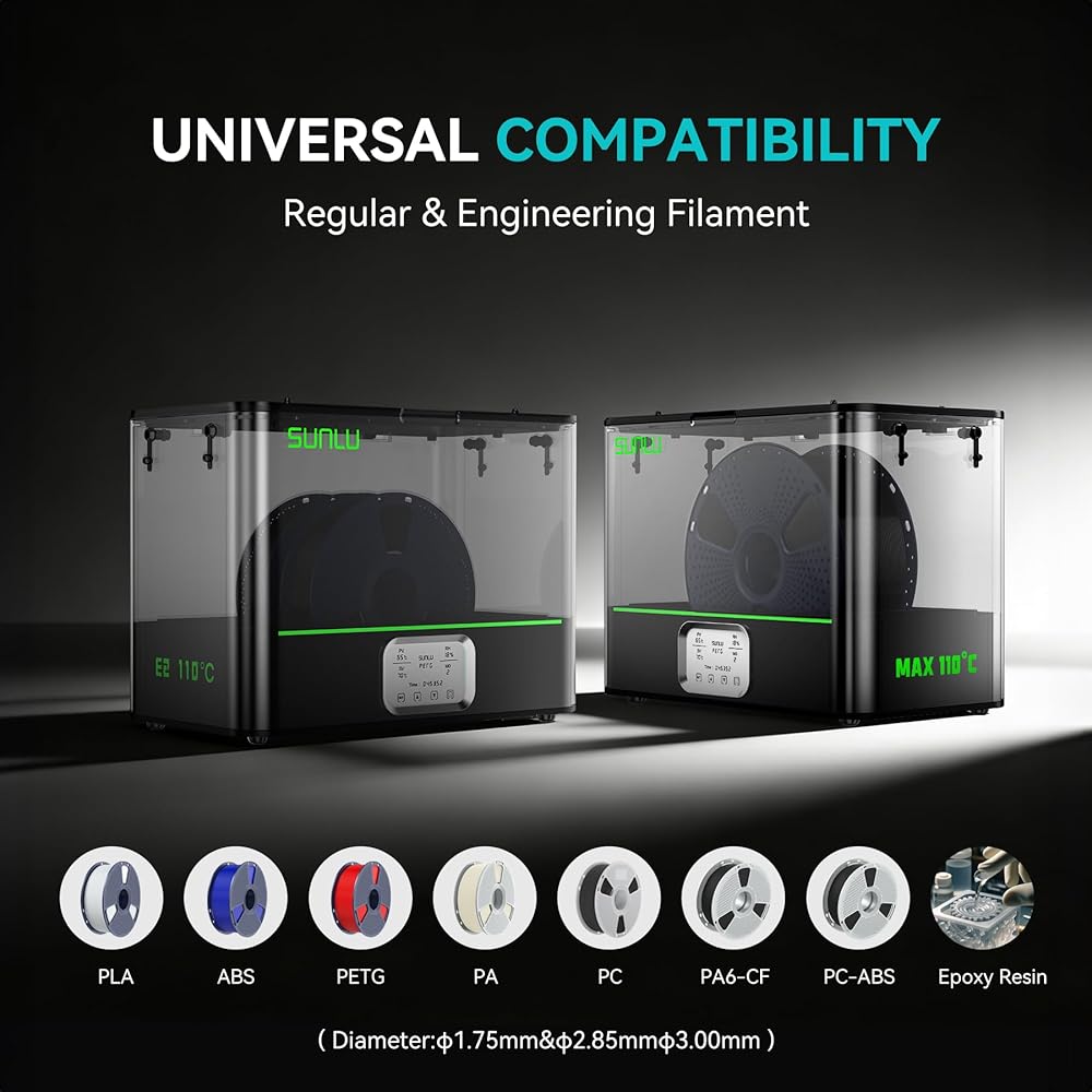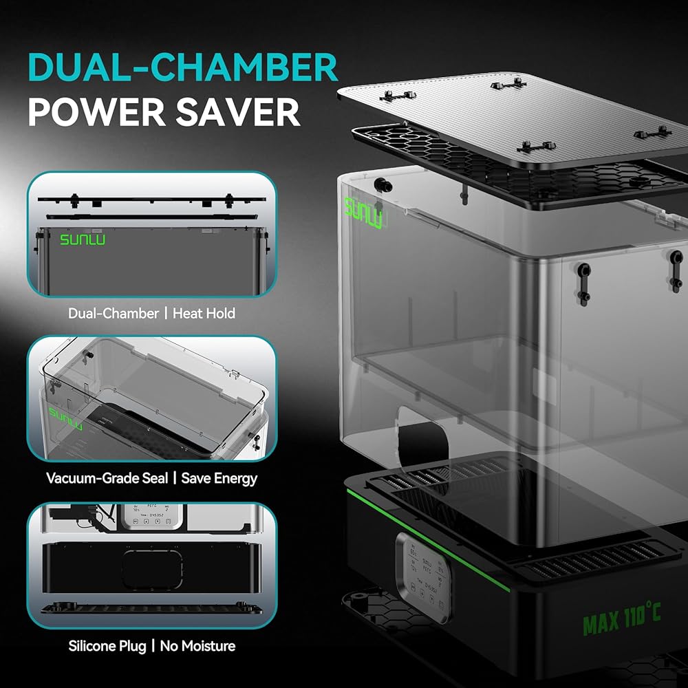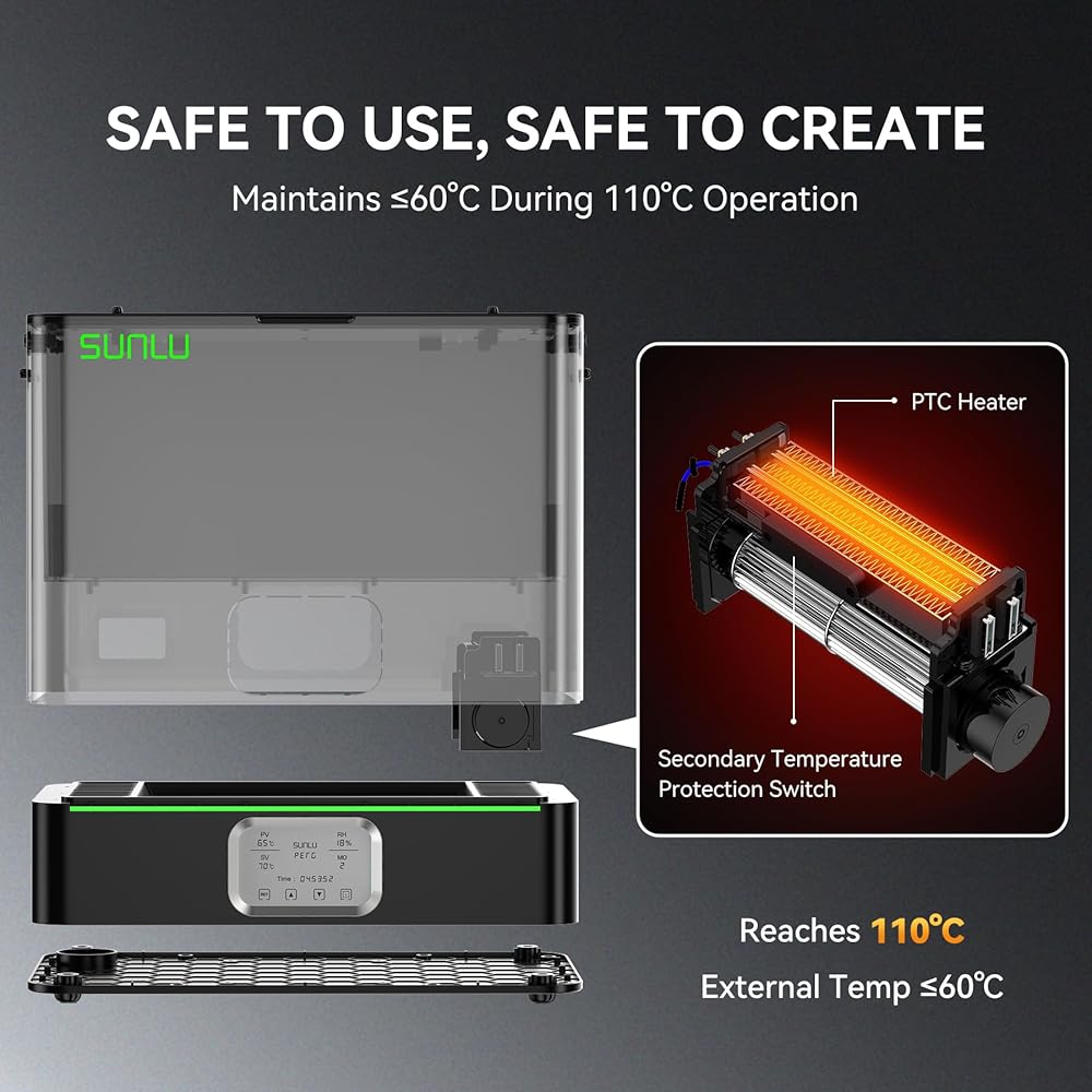 ①【SUNLU Dry & Anneal 2-in-1 FilaDryer】- E2 Filament Dryer combines drying and annealing in one, 110℃ max temperature, designed for engineered materials. Push the limits of 3D creation with this all-in-one solution.