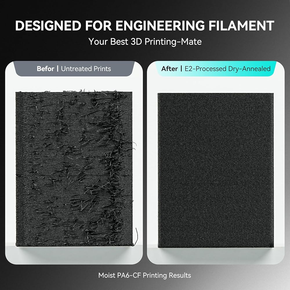 ②【First Annealing FilaDryer】- 110°C Annealing Chamber: Unlocks 99.99% of engineering materials' full potential—PA, PC, Nylon (GF/CF variants), and more—for ultra-tough, impact-resistant prints. Ideal for high-performance applications