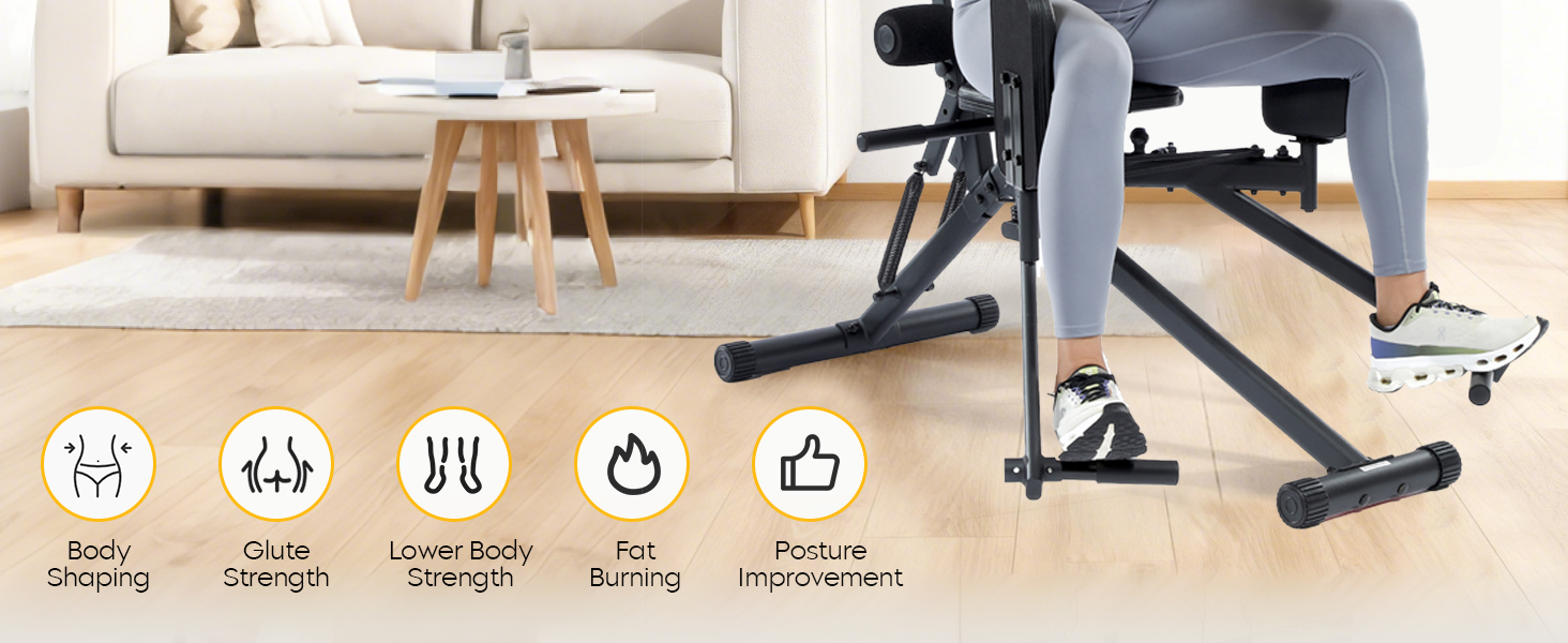 3-in-1 Glute & Leg Trainer:3-in-1 hip thrust trainer supports abduction, adduction, and back stretching exercises. It targets the glutes and adductor muscles to enhance strength and stability, helping you build fuller glutes and more defined leg lines.making it an ideal choice for your bedroom, living room, or workout corner.