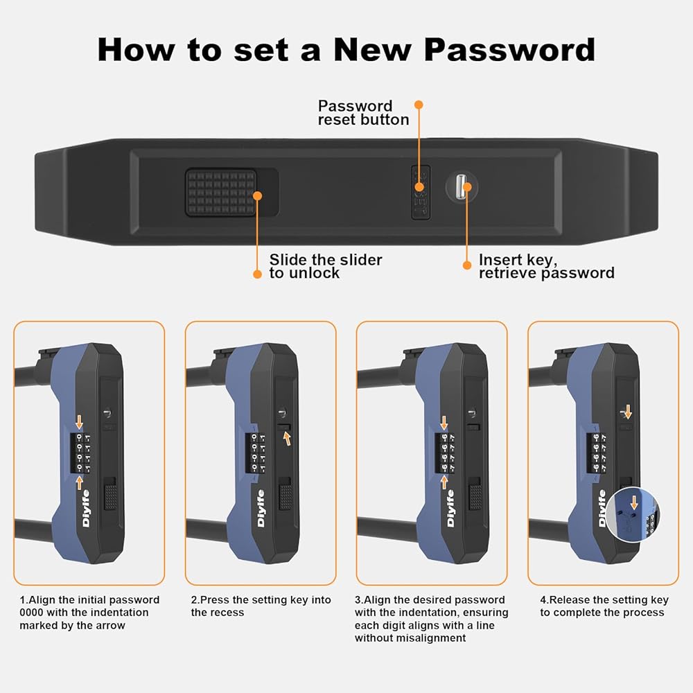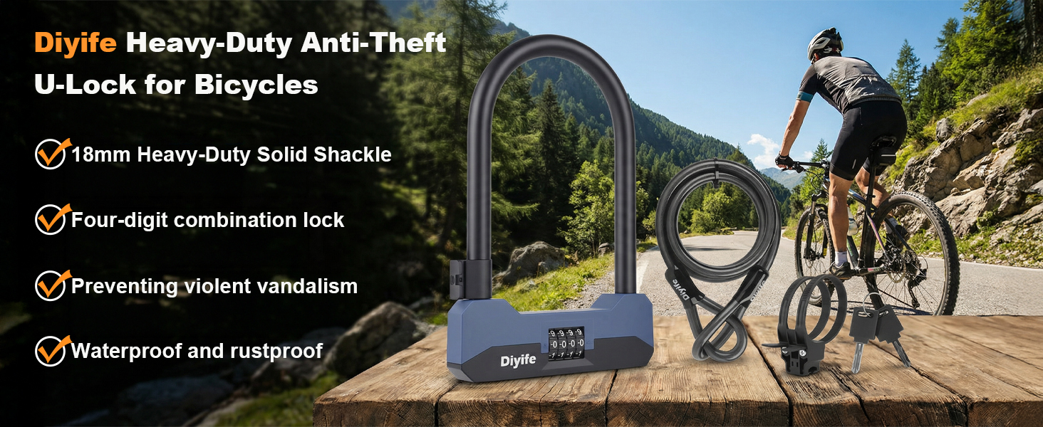 Diyife Bike U Lock Heavy Duty Anti Theft with 5FT Steel Cable, 18mm Shackle, 4-Digit Combination High Security Bike Lock with 2 Keys and Mounting Bracket for Electric Scooter, Ebike, Road, Motorcycle