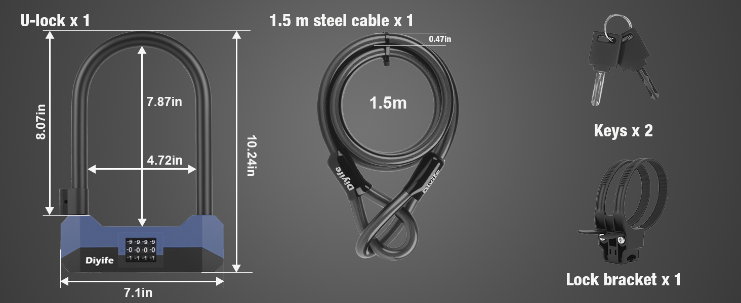 【Wide Applications】For versatile security, the U-lock can be used independently or together with the steel cable, depending on your needs. It‘s perfect for bicycles, e-bikes, e-scooters, and motorcycles in high-theft areas such as campuses, parking lots, and garages. Also great for securing lawn mowers, gates, grills, ladders, toolboxes, and other valuables. Make sure to check the size to ensure a perfect fit.