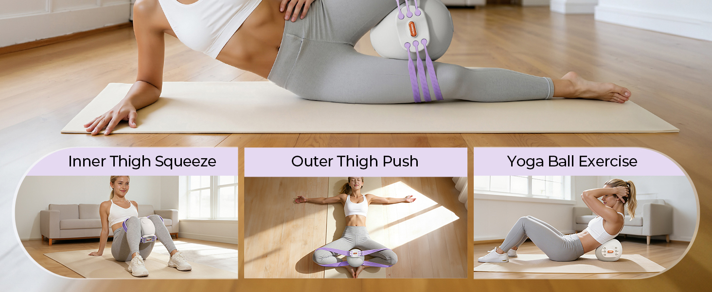 3-in-1 Kegel & Fitness Trainer: A multifunctional kegel exerciser for women combining a thigh master, pelvic floor trainer, and full-body toning tool—ideal home workout equipment for shaping, strengthening, and postpartum recovery.