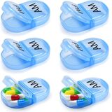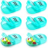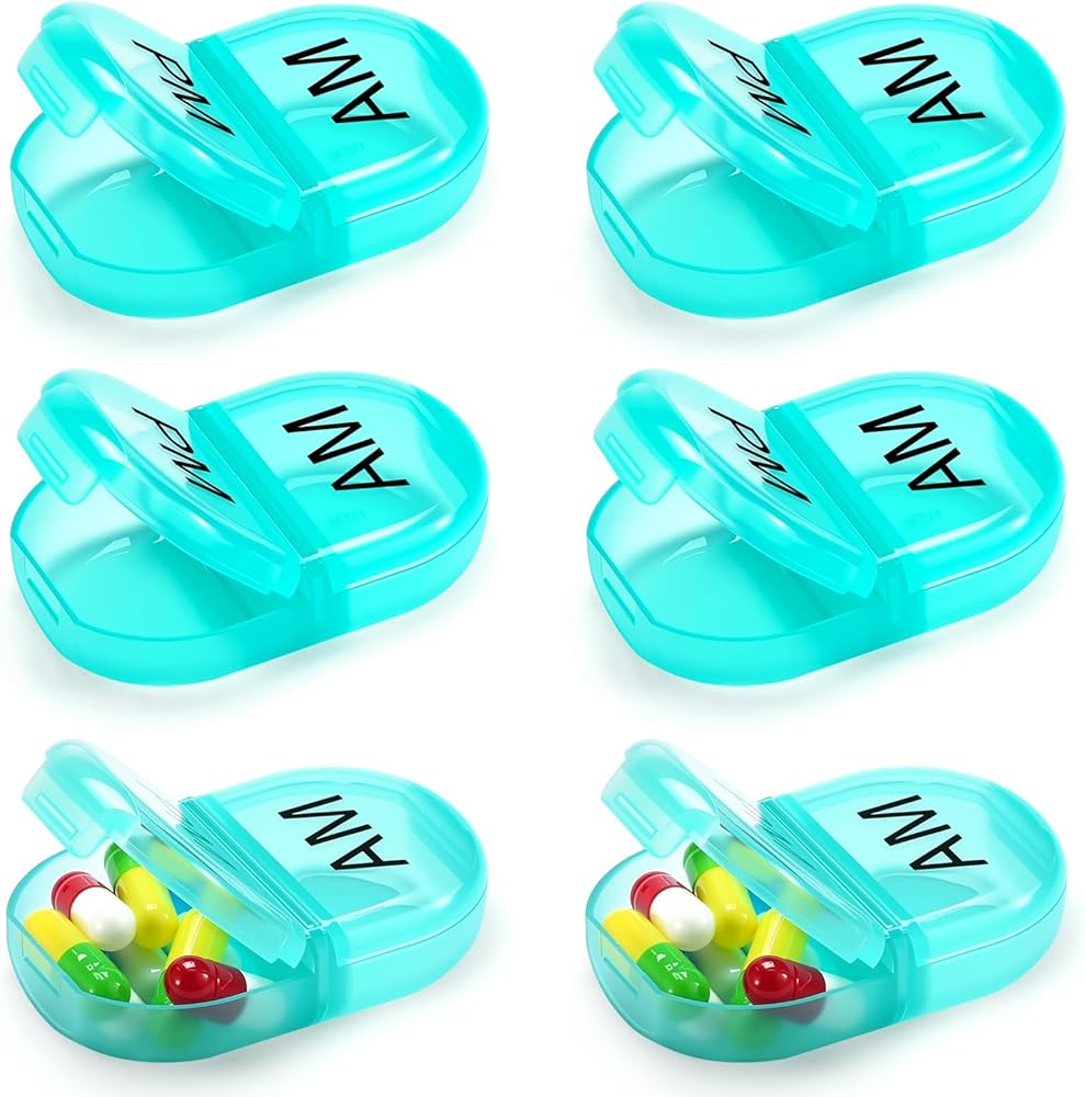 6 PCS Pill Organizer AM PM, 2 Compartment Pill Box for Pocket or Purse, Small Daily Medicine Case, Travel Pill Holder, Easy Open Pill Container for Seniors, Vitamins & Supplements (Green)