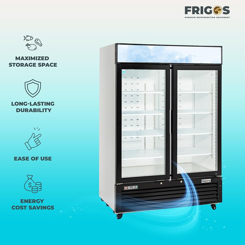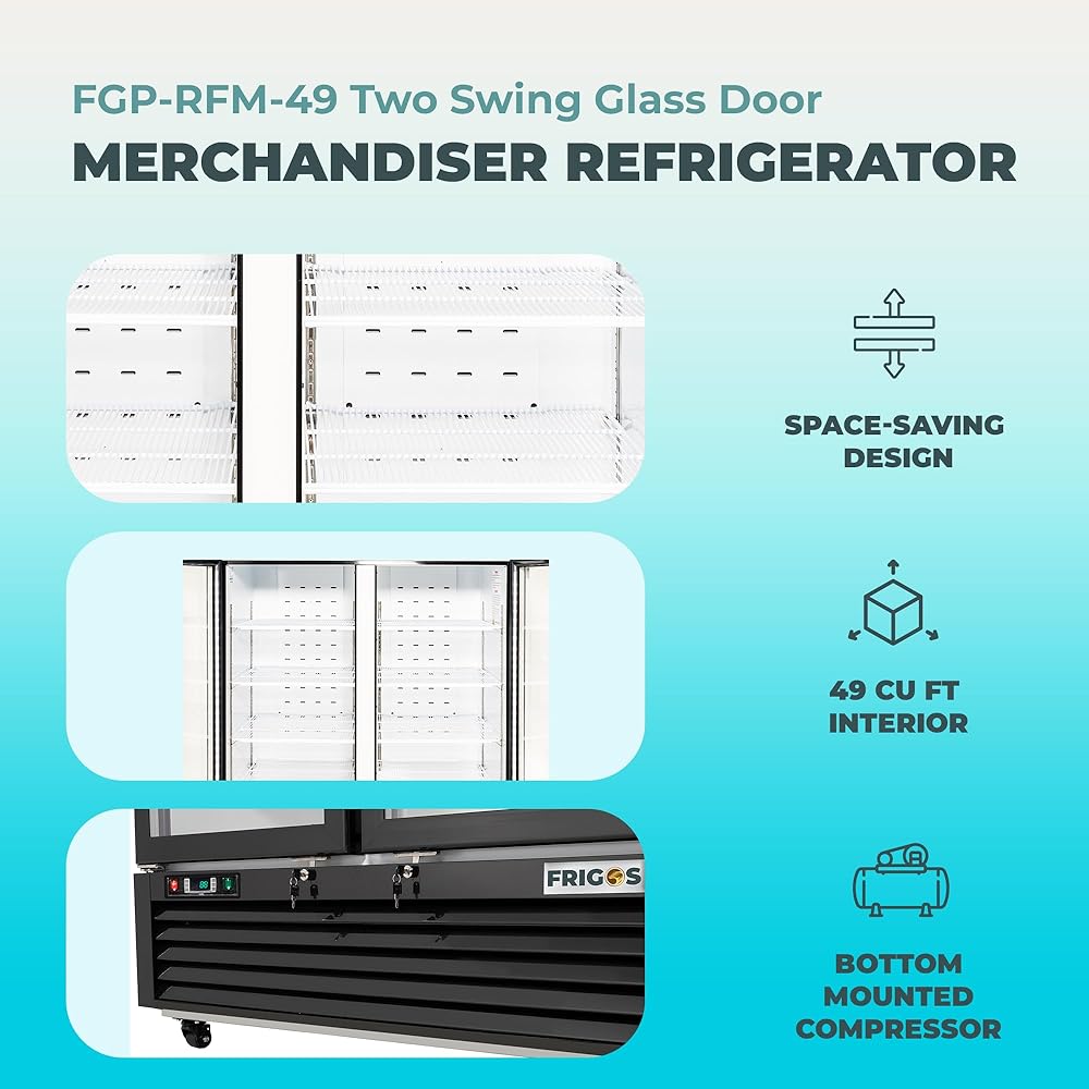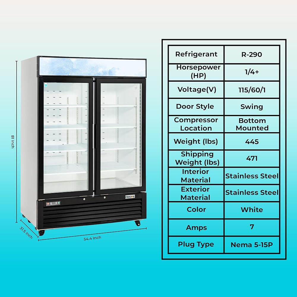 Frigos Premium FGP-RFM-49 54.4" Two Swing Glass Door Merchandiser Refrigerator 49 Cu Ft White - Display Beverage Fridge Ideal for Commercial Kitchen - Included Liftgate
