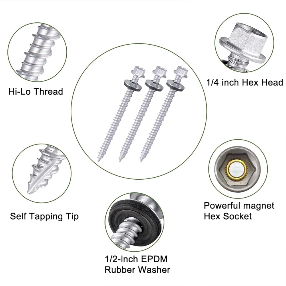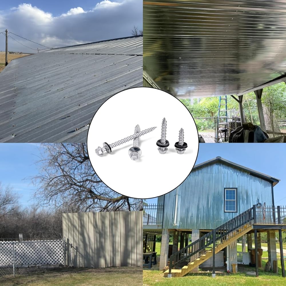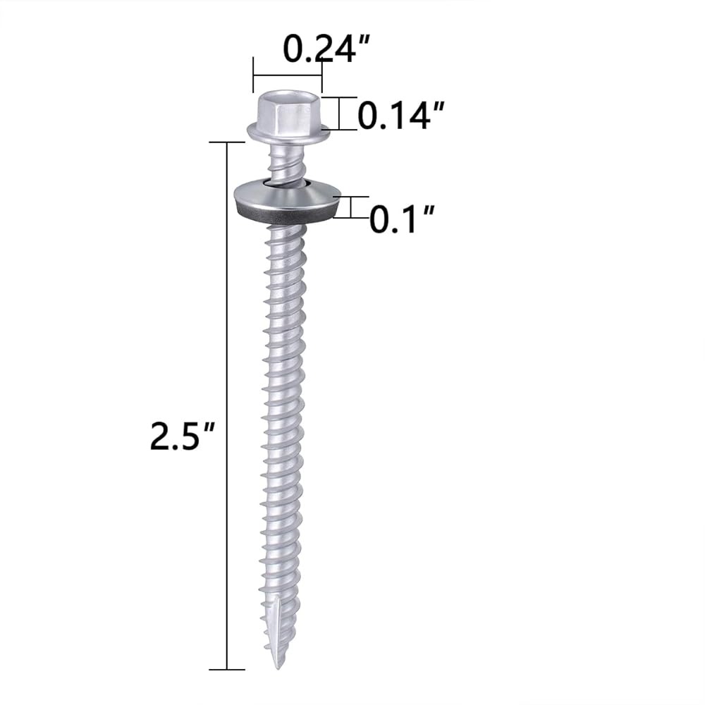 50 Pcs #10 x 2-1/2" Silver screws,they can be used for metal roof or wall panel projects, fences,hangars, sheds, silos, store roofs, barns or sloping roofs.