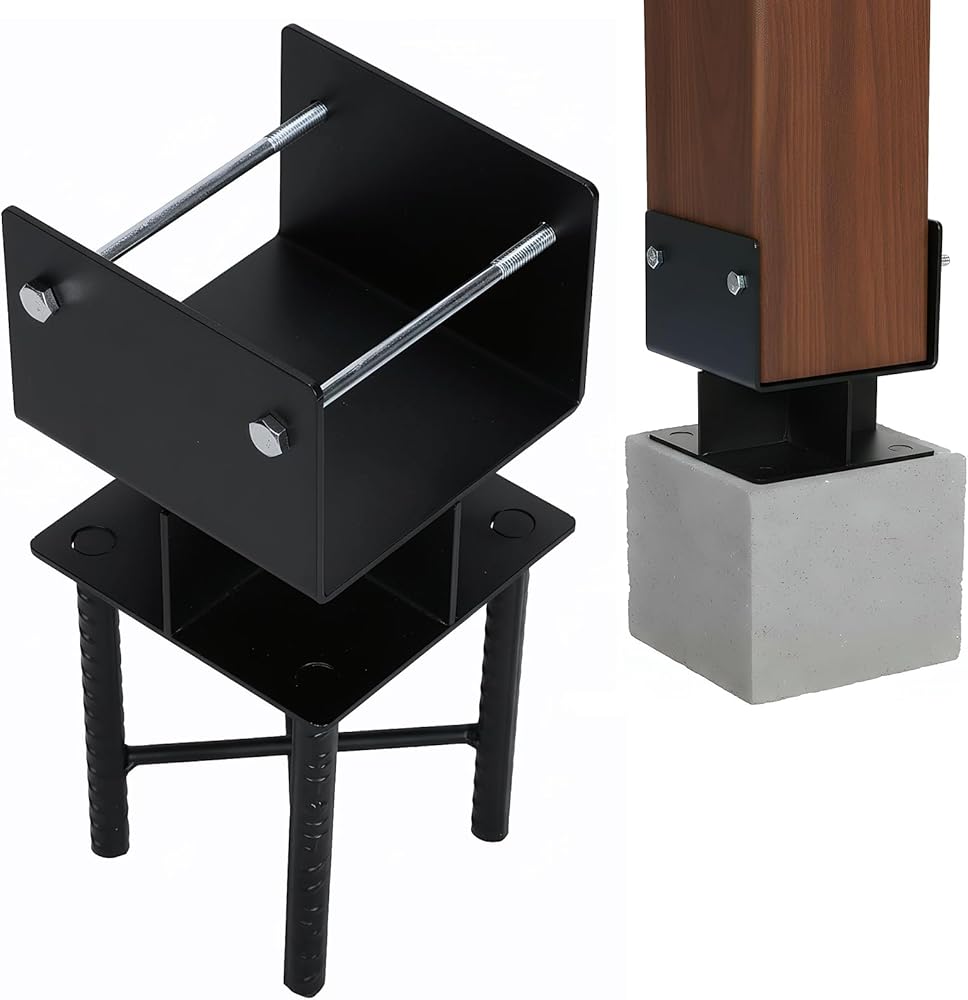 Easy Installation Steps: All required accessories and screws are included for quick setup. Simply insert the wet concrete post into uncured concrete, drill holes in the wooden post, and secure with bolts and nuts for a firm hold.