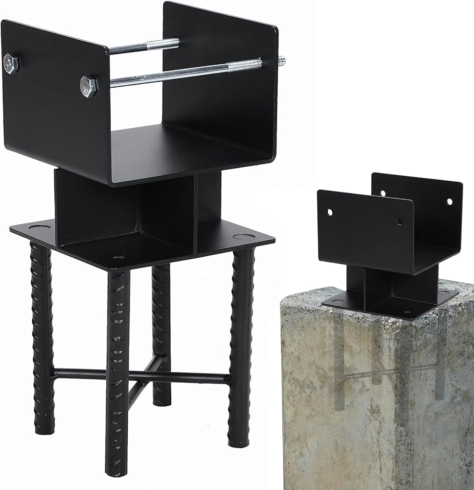 Easy Installation Steps: All required accessories and screws are included for quick setup. Simply insert the wet concrete post into uncured concrete, drill holes in the wooden post, and secure with bolts and nuts for a firm hold.
