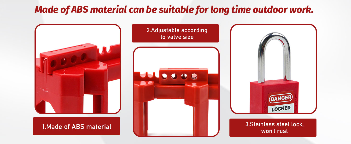 • Multiple Holes Safety Padlocks: This adjustable pipeline valve locking device has multiple holes for precise padlock position and can hold up to 4 safety padlocks. Adjustable black spacers can be added or removed according to tap water valve handle thickness.