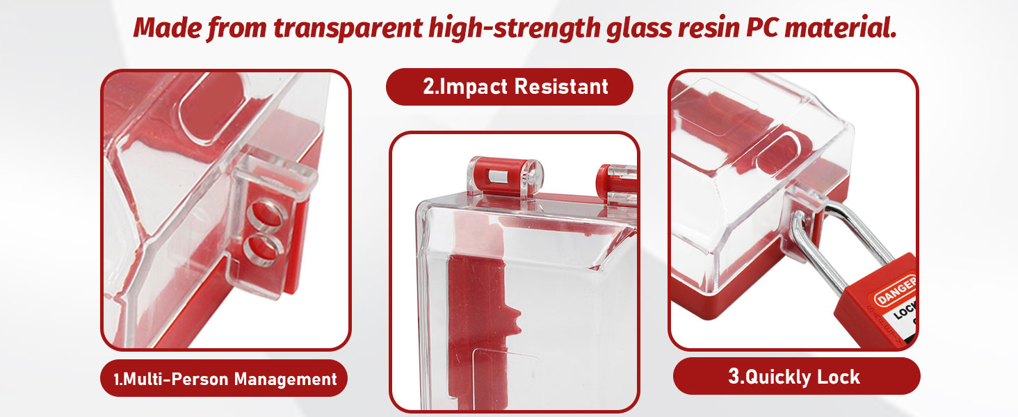 • OSHA-Compliant Lockout Protection: Secures emergency stop button covers and wall-mounted button boxes with dual lock holes, meeting safety standards for hazardous energy control during maintenance.