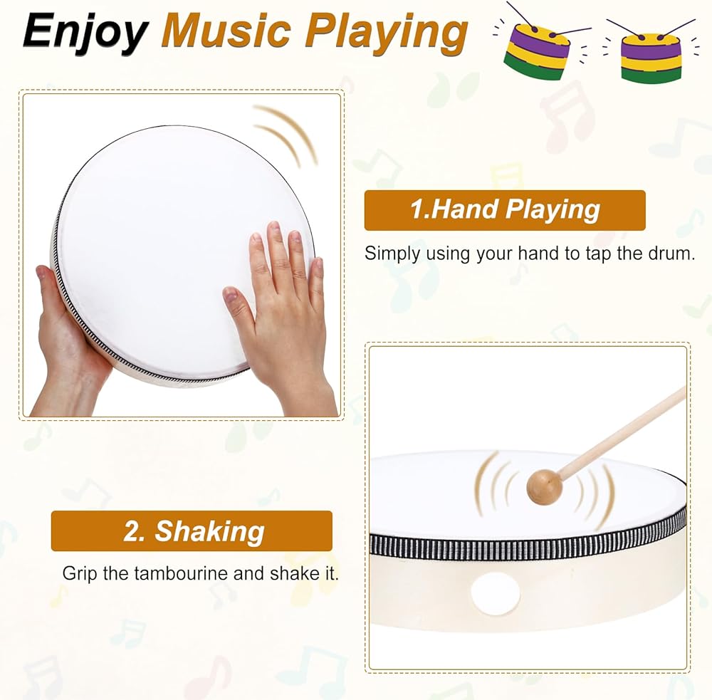 The wood frame drums are suitable for music classes, performance props, dance or magic shows, and outdoor events (weddings, parties, camping). These music drums can enhance rhythm learning and creative expression in educational or recreational settings.