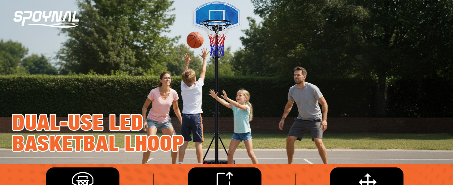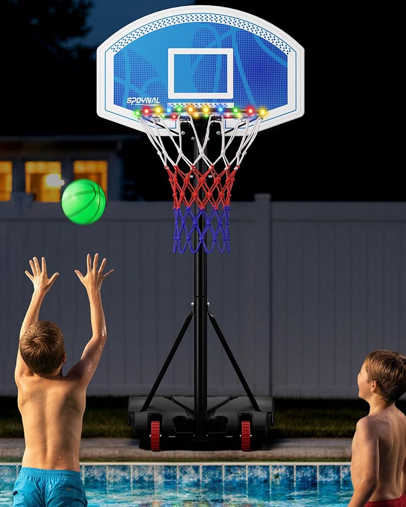 LED Portable Basketball Hoop for Teens, Adjustable Height 3.8 FT–7 FT Goal System, with Fillable Base & Wheels | Perfect for Driveway, Poolside, Garage & Night Training, Pool Basketball Hoop