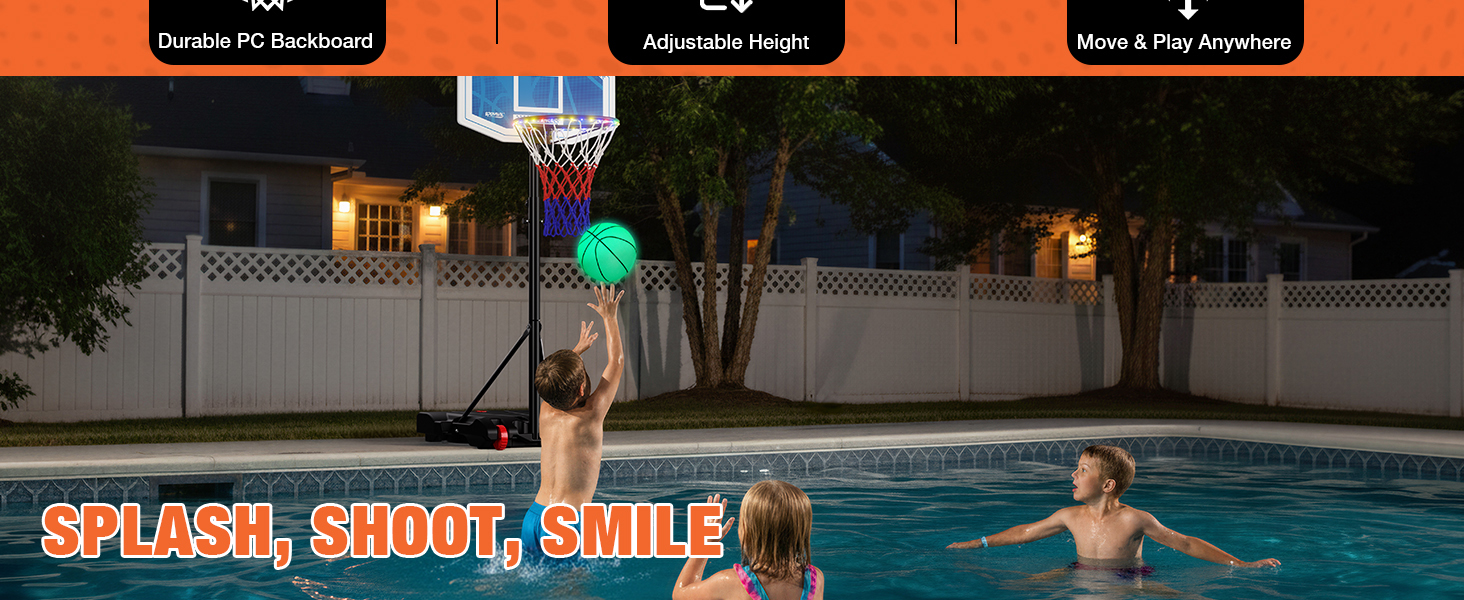 🌟 【 DUAL HEIGHT MODES FOR ANY LOCATION】: Quickly switch between poolside fun and regular court play! This innovative basketball hoop offers a specific 45-59 inch height for safe, exciting pool games and a standard 5.83ft to 7ft range for driveway, backyard, or garage use, making it the most adaptable system for your home.