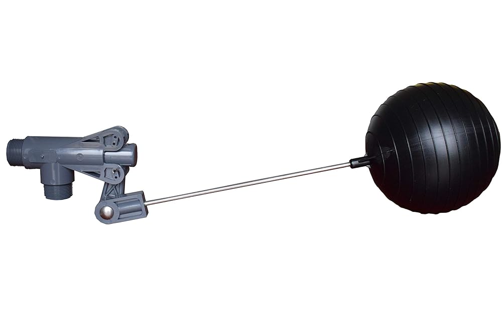 Standard pipe mount, heavy duty non corrosive, 1-1/2" MIP inlet and outlet with 14" x 1/4" stainless steel rod and 8" polyethylene float ball. Replaceable seals are made of long wearing, chemical resistant Santoprene rubber. Valve body is made of NSF approved PVC. Hardware made of 18-8 stainless steel. 1.0" Orifice with an estimated flow rate of 90 gpm at 20 psi and 145 gpm at 50 psi.