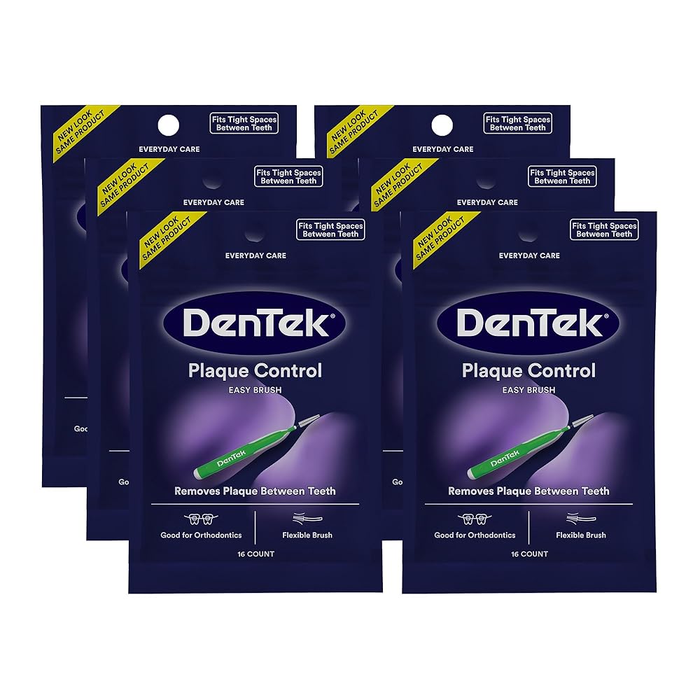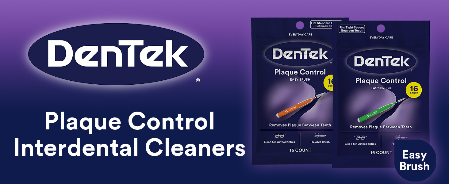 DenTek Easy Brush Plaque Control Interdental Cleaners with tight fit brush makes it easy to brush the hardest-to-reach spaces between teeth. In addition to a great clean, you're getting an advanced brush that includes the following features: tapered brush, flexible wire and flexible grip. The tapered brush helps clean tight spots and is great for braces, implants, bridges, crowns and other appliances. A flexible wire allows the soft bristles to bend during cleaning. Interdental brush has advanced fluoride coating and Mouthwash Blast Mint flavor. The nonslip handle flexes to hold positions when bent. The cleaners come with an antimicrobial cap that helps keep brush clean between uses. All DenTek Interdental Cleaners remove food and plaque, reduce tooth decay and fight bad breath. Go beyond brushing with DenTek! Help preserve and protect your teeth for a lifetime with DenTek's innovative dental care products.