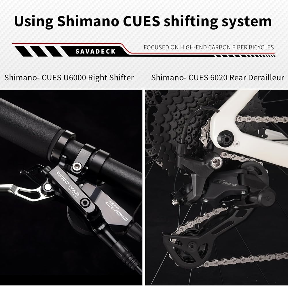 [Ultra-Light T800 Carbon Performance Frame]: Featuring a premium T800 carbon fiber frame and fork with a total bike weight of just 10.4kg (22.92 lbs) – offering a strength-to-weight ratio 5x greater than aluminum. Engineered to reduce rider fatigue and elevate efficiency, making every ride, from racing to exploration, faster and more enjoyable