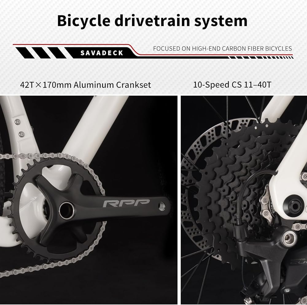 SAVADECK Gravel Bike with T800 Carbon Frame and Fork, with Shimano U6020 10-Speed Hydraulic Disc Brakes, 700Cx40mm Tires for Men & Women All-Terrain Riding