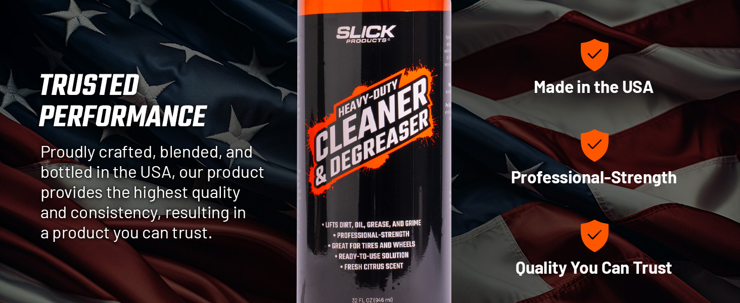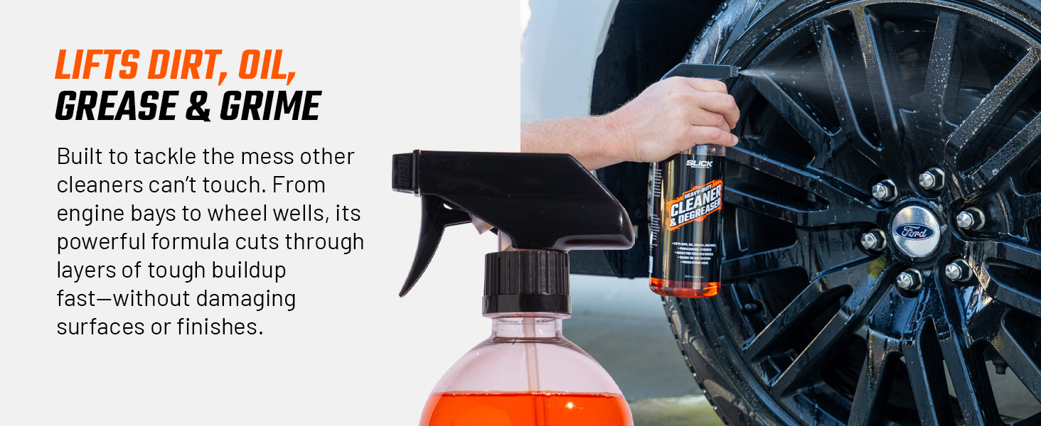 Slick Products Heavy-Duty Cleaner & Degreaser – Professional Strength Citrus Formula for Tires, Wheels, Engines, Chains & Tough Grime – Ready to Use or Dilute, 64 oz