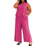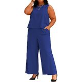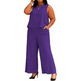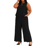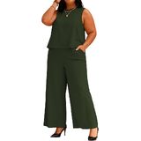 TOPSRANI Womens Plus Size Two Piece Outfits Casual Lounge Sweatsuits Tracksuit Sleeveless Baggy Wide Leg Long Pants Sets with Pockets