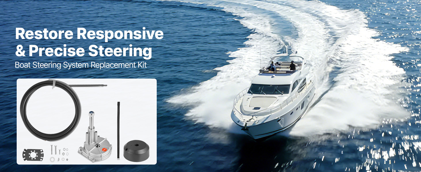 High-Performance System: This boat steering system includes a 17 ft steering cable, an aluminum alloy steering helm, and complete mounting hardware. It is designed to replace worn components and restore smooth, precise, and responsive control
