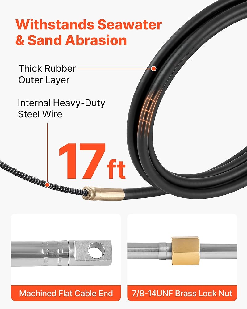 17 ft Steering Cable: The 17 ft outboard steering cable kit features a machined flat end for easy insertion into the outboard motor. It delivers fast and accurate steering response during operation. Measure the required cable length before replacement