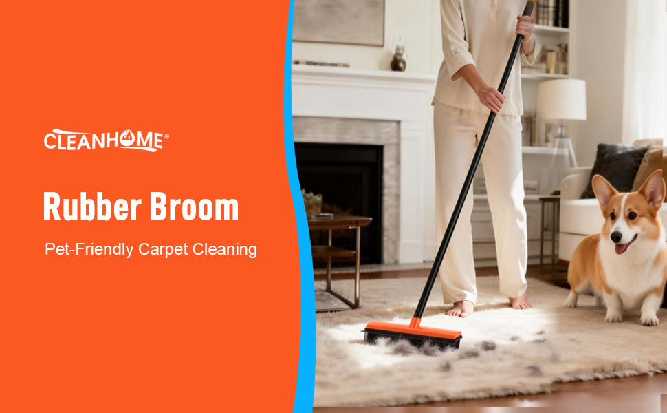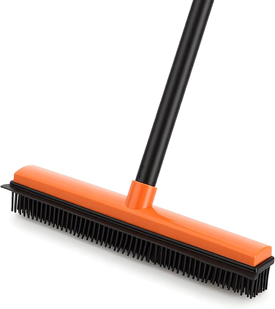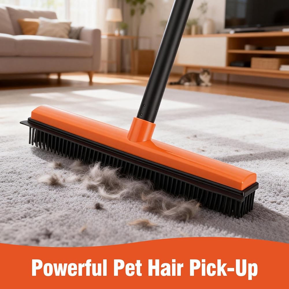 Effortless Pet Hair Removal on Carpet & Stairs: Specially designed for pet owners! Our rubber broom head glides smoothly to pick up embedded dog and cat hair from carpets, rugs, and stairs without tangling. Say goodbye to frustrating hair clumps.