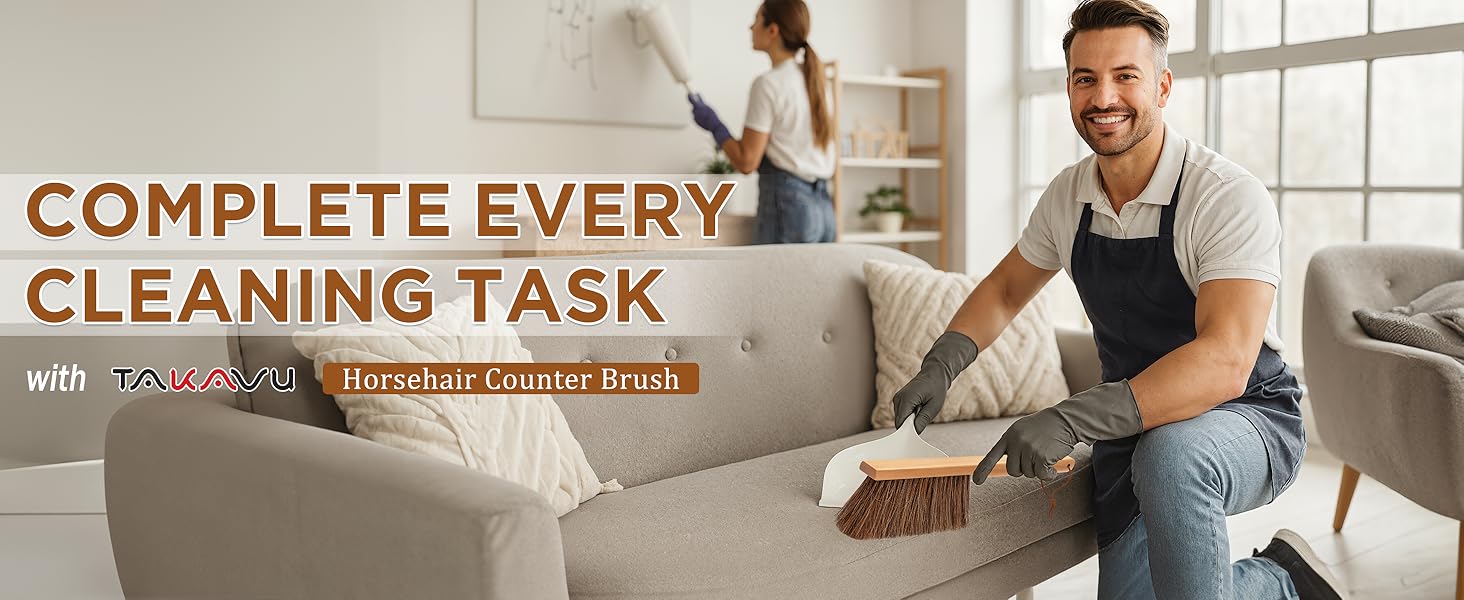 Takavu Multi-Purpose Counter Brush with Solid Wood Handle, Natural Horsehair Bristles for Gentle Dusting of Furniture, Drafting, Patio, Fireplace Cleaning, Shop Brush, Woodworking Tool & Accessories