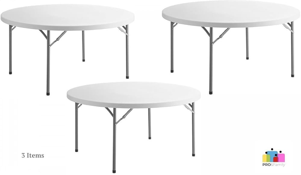 3 Pack! 60 in. White Round Folding Table Round Tables for Parties Plastic Circle Table Outdoor Round Folding Table Foldable Round Table Portable Bar Table for Party Folding Desk Round Fold Up Table