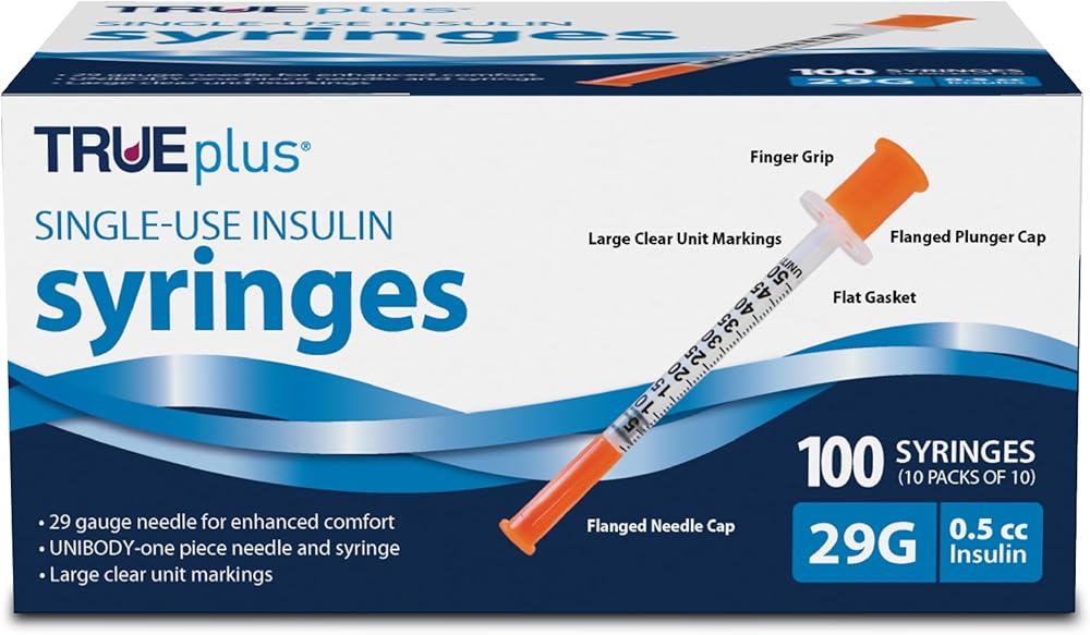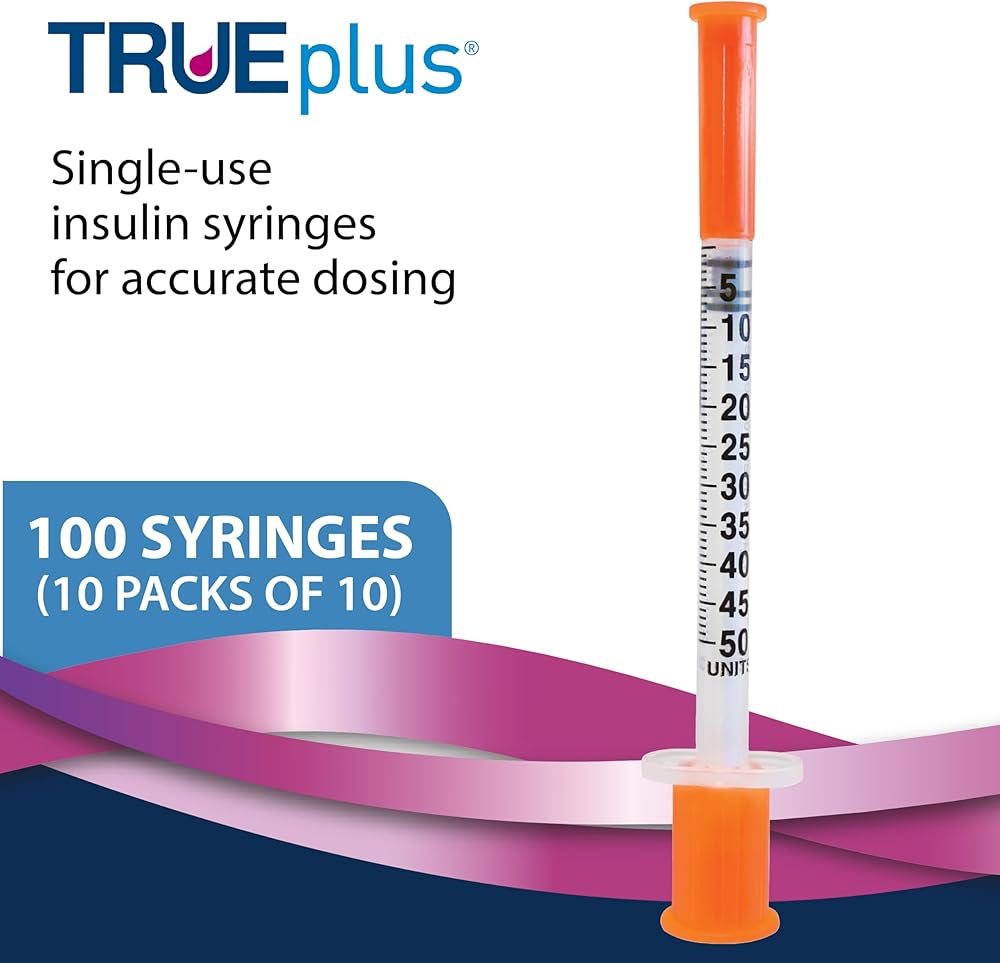 Other Sizes Available: Other syringes and needle sizes are available from TRUEplus (sold separately). Syringes available in 28G, 29G, 30G, and 31G. Barrel sizes available in 0.3cc, 0.5cc, and 1.0cc. Needle lengths available in 5/16" or 1/2"