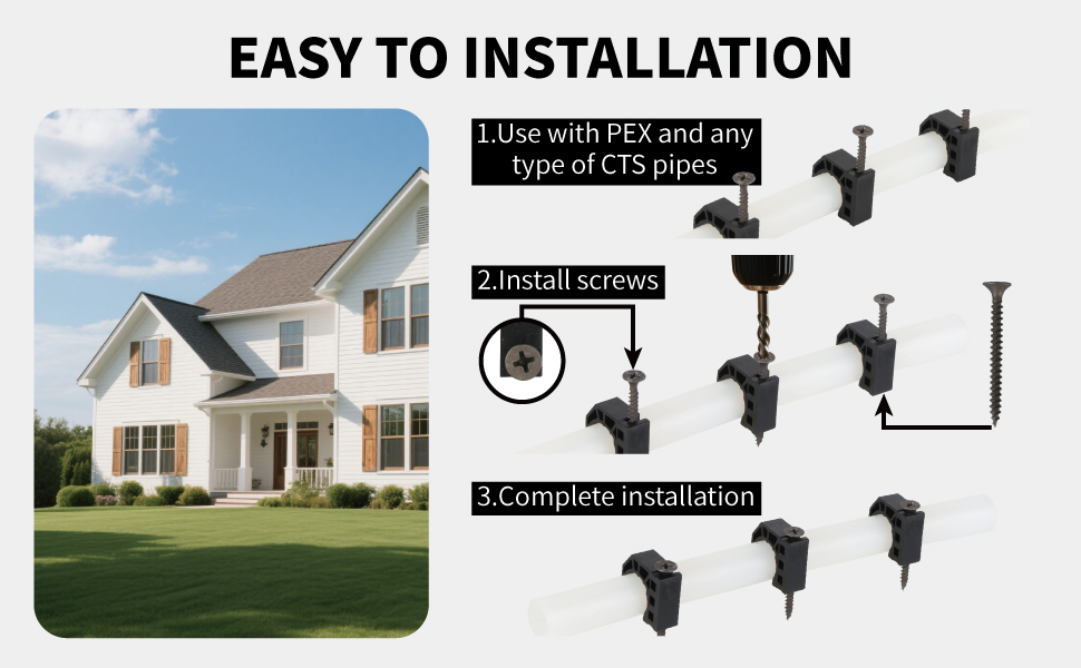 Easy to use: The pipe clamp design makes supporting and removing pipes easy and secure. Pex and Non-metallic pipe clips can effectively reduce noise. Compatible with Pex tubing & most other pipes.