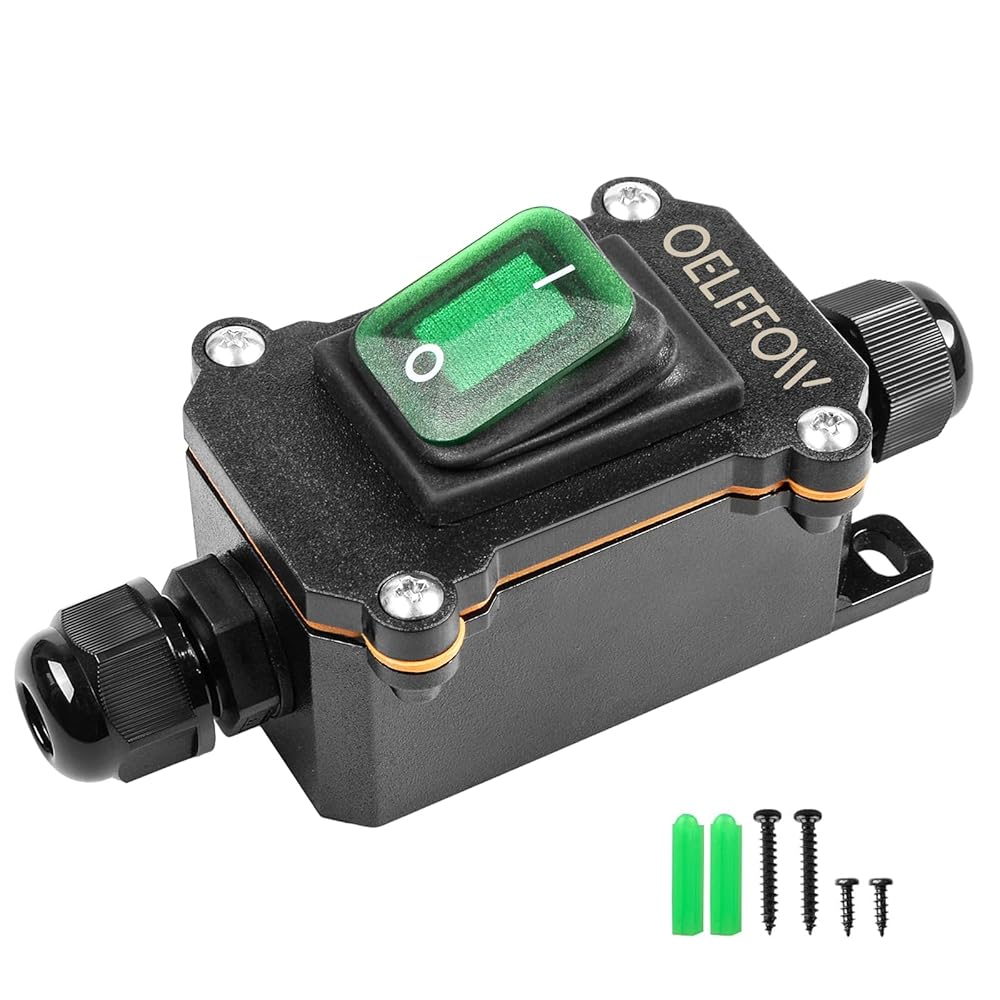 OELFFOW Heavy Duty Rocker Switch 15A-250V 20A-125V SPST 2Pin Screw Fastened ON-Off Metal Rod Switch with Waterproof Cover (2-Pack)