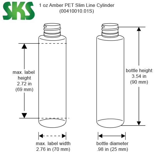 1 oz Amber PET Slim Line Cylinders (Bulk), Caps NOT Included