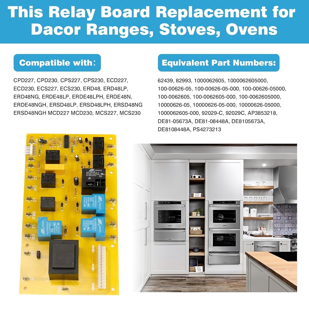 Precise Matching:this Relay Board Replacement for Dacor Ranges, Stoves, Ovens,As a high-quality alternative to original equipment manufacturer parts, it matches OEM components in material, manufacturing process, and electrical performance.