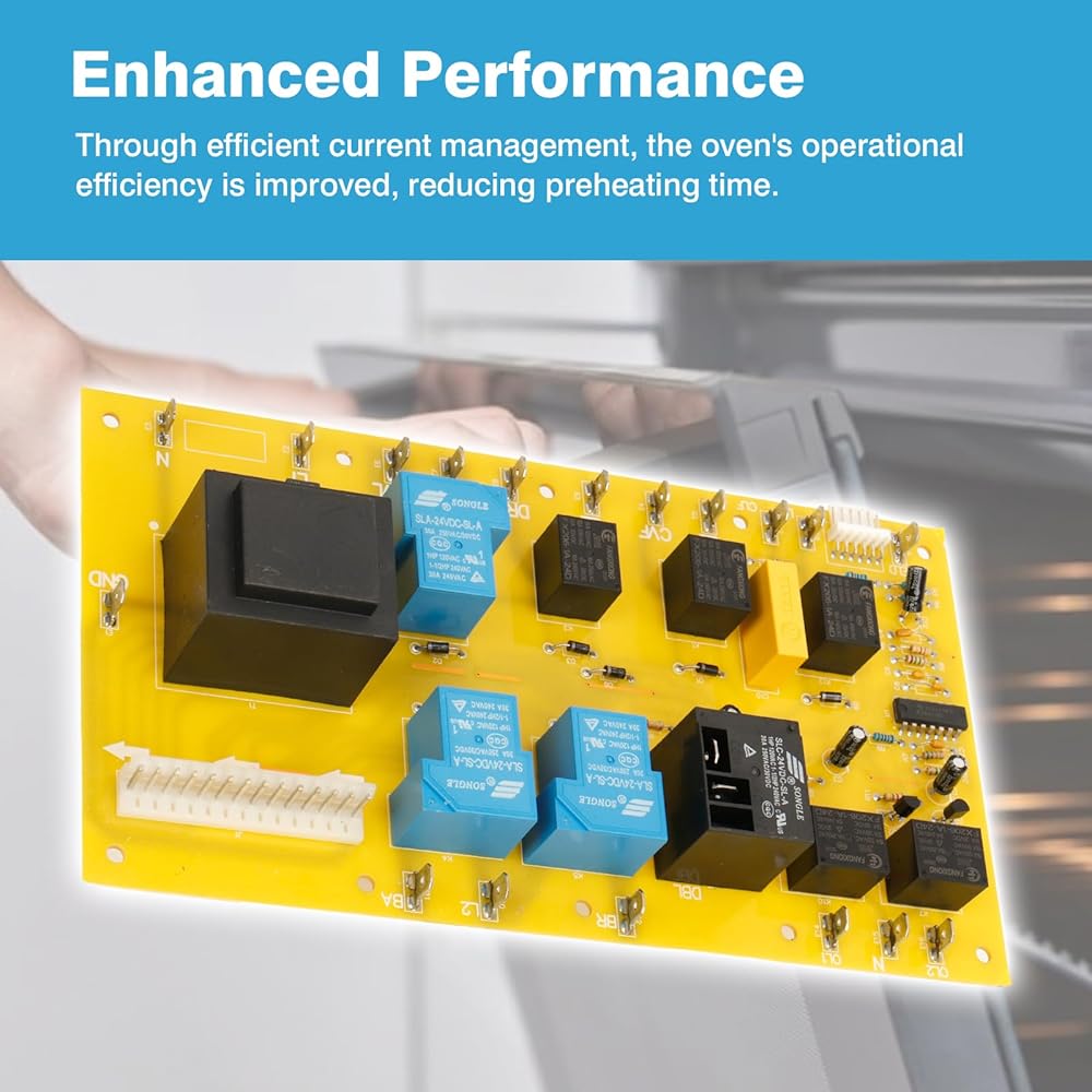 Easy Installation, Direct Replacement: Installation typically requires no complex circuit modifications. Simply remove the old board and install the new one for quick repairs. If your oven fails to heat, experiences abnormal heating or exhibits malfunctioning features, it's likely this relay board has failed and needs replacement.