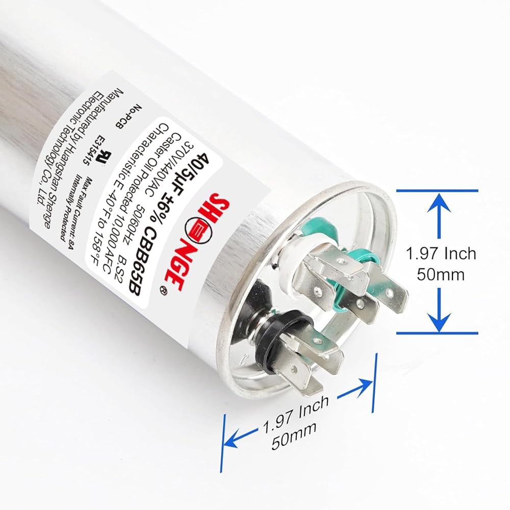 40+5uF 40/5 MFD ±6% 370V/440V CBB65B AC Capacitor, Dual Run Round Capacitor Replacement for HVAC Motor Start, Fan Start, Heat Pump, Condenser Straight Cool