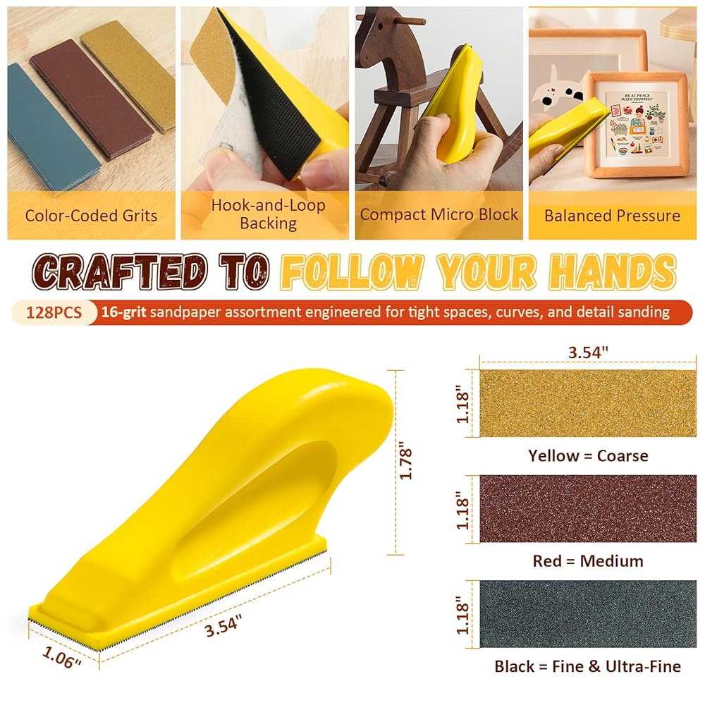 Go Where Only Your Hands Can Reach: A compact micro sander designed for curves, corners, grooves, and every tight space your hands refuse to ignore.
