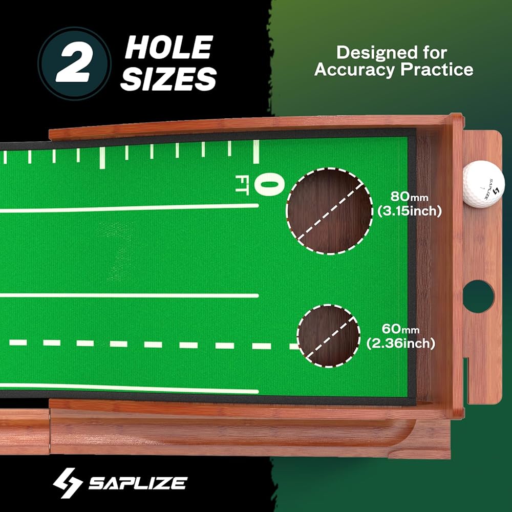 SAPLIZE Indoor/Outdoor Putting Mat with Auto Ball Return, Dual Holes & Distance Markers - Portable Golf Practice Green for Home or Office Training Aid