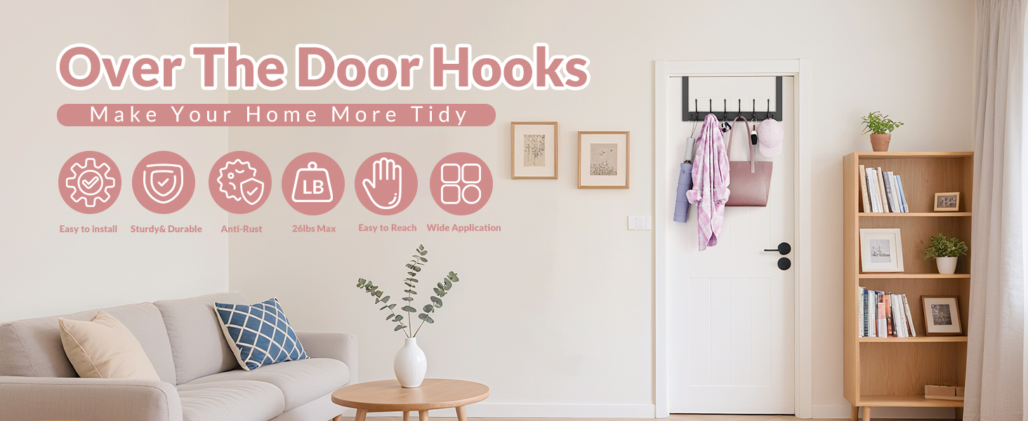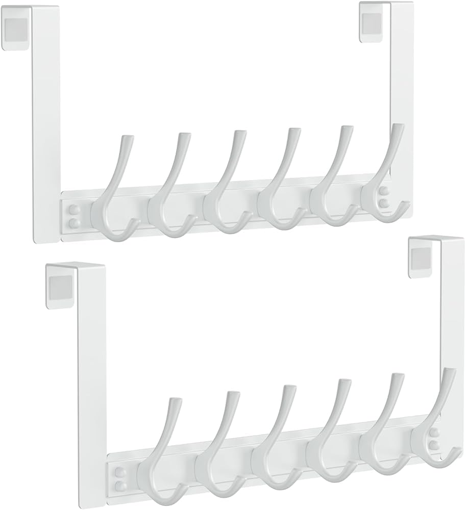 Multi Purpose Door Hanger: This door coat hanger features 6 sturdy hooks, perfect for organizing messy coats, towels, hats, backpacks, umbrellas, keys, and more. Ideal for bedrooms, kitchens, dorm room, bathrooms, closets, or garages – instantly transform any cluttered space into a tidy one