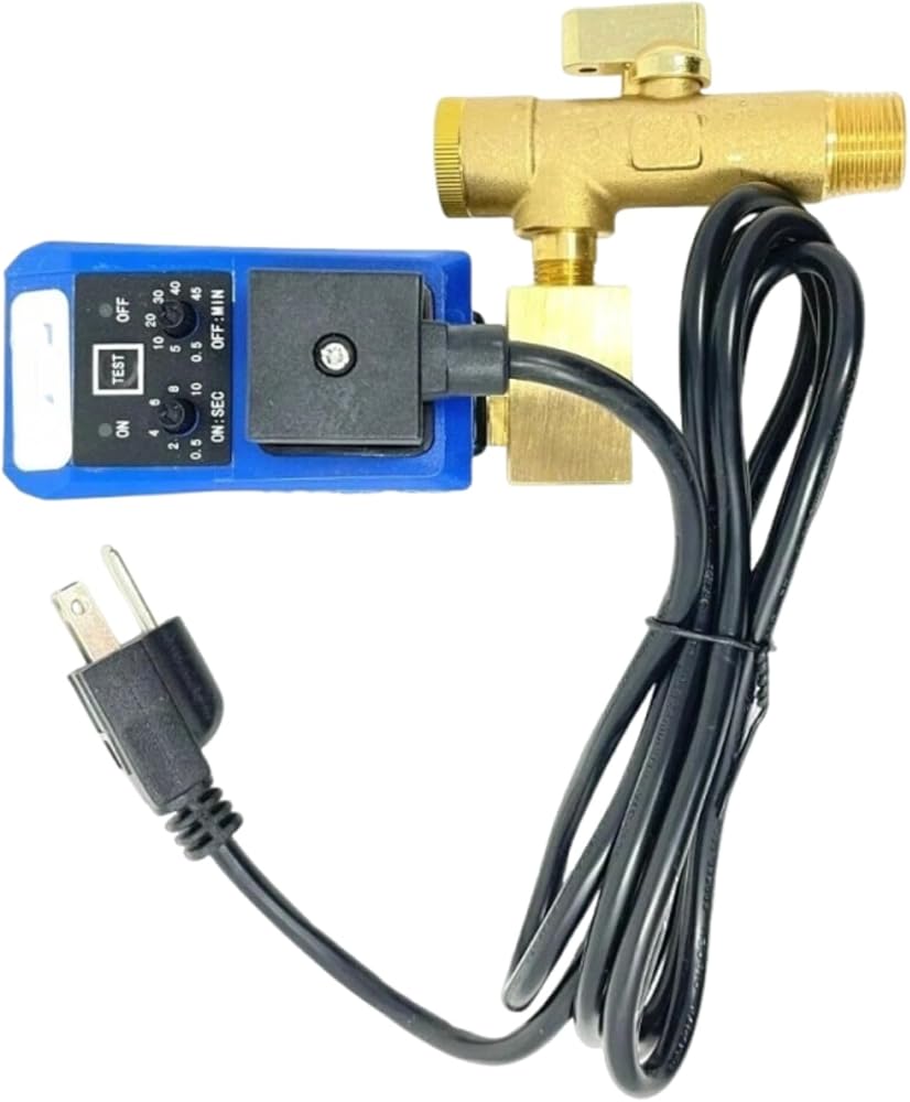 When valve activates, condensate flows through the orifice and out the back discharge 5 to 10 second open cycle 5 sec. to 45 min. off cycle 230 Max. PSI 110v/120 VOLT 60HZ/.5A 4 mm diameter precision orifice Includes LED lights and test button 6' Power cord w/plug Durable Construction: Industrial-grade alloys resist high temperatures , ensuring long-term reliability in heavy-duty applications like refrigeration and manufacturing.