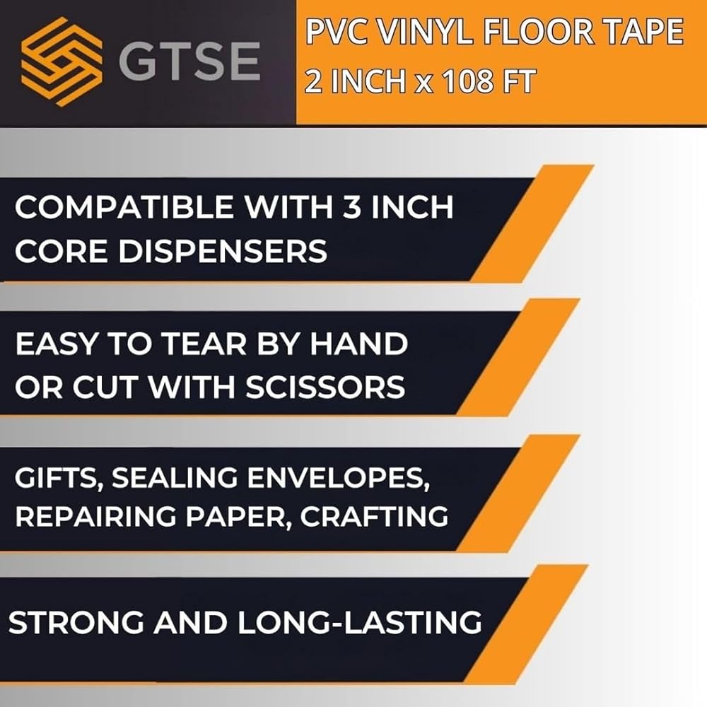 High Durability and Adhesion: GTSE Line marking tape is crafted from high grade plasticized PVC, ensuring long-lasting performance even in high-traffic areas. Its strong rubber based adhesive backing guarantees it stays securely in place, resisting peeling or lifting over time.