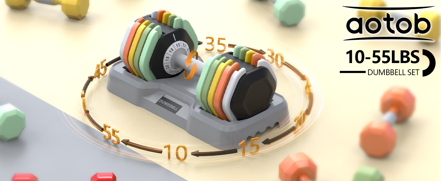 10 in 1 Adjustable Dumbbell: adjust weight from 10 lbs to 55 lbs(10/15/20/25/30/35/40/45/50/55) , 55 lbs coloreful dumbbell suitable for professional and beginner, bring rich exercises feeling during training for both.