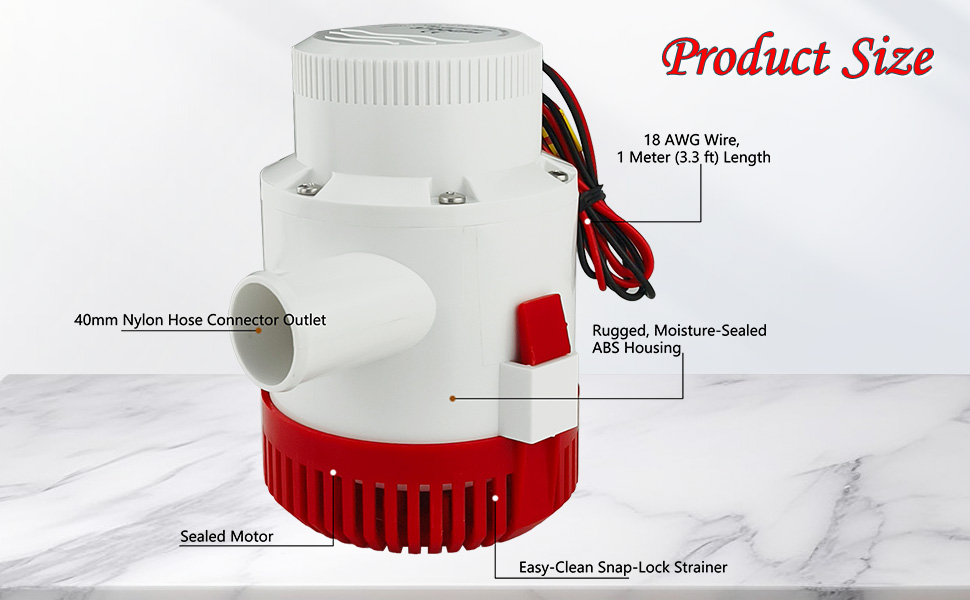 【Universal Fit & Easy Installation】-Equipped with a standard 1-1/2 inch (40MM) outlet, this pump seamlessly connects to most common marine hose systems. The straightforward design simplifies the installation process, getting you operational quickly and efficiently.