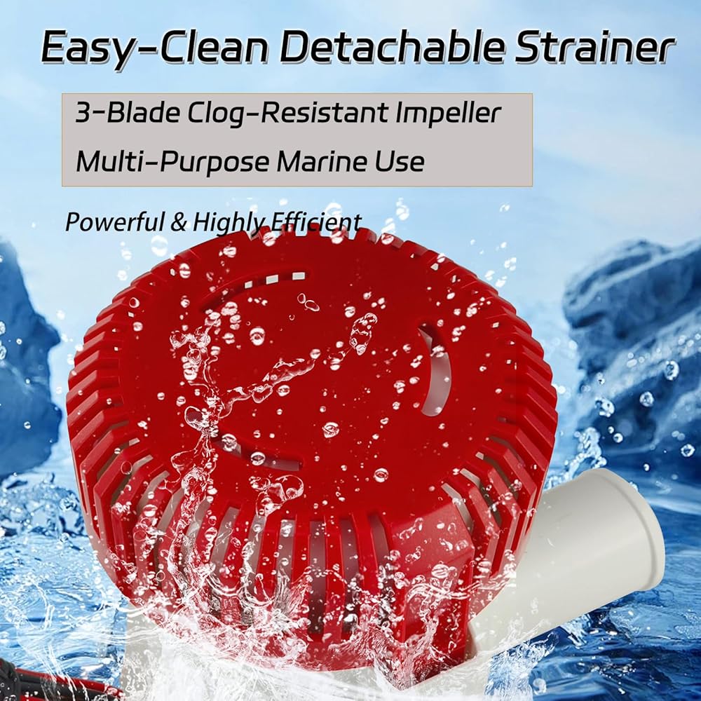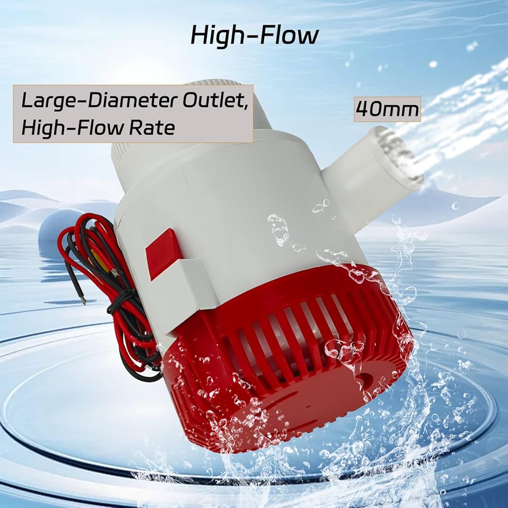 【3700 GHP High-Flow Performance】-Experience powerful water removal with a massive 3700 gallons per hour flow rate. This 12V DC submersible pump is moving large volumes of water quickly while operating on a low-current, cost-effective power supply.