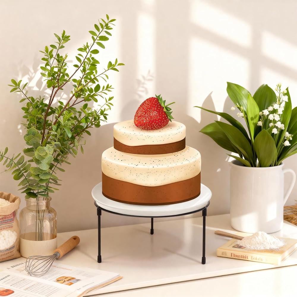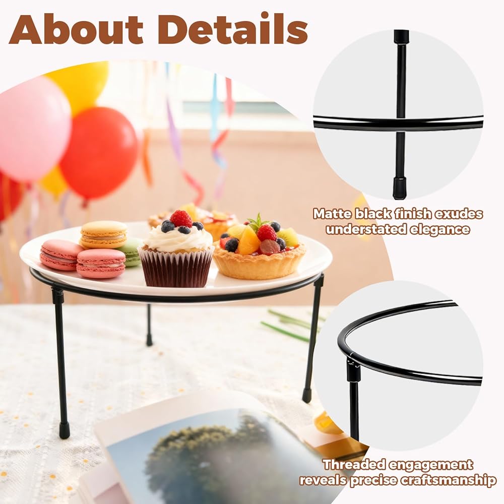 Dimensions & Color: Each metal round pizza display stand measures 21.6cm in diameter and 10.8cm in height (8.5 inches by 4.2 inches), available in a sleek black finish that complements modern and traditional decor styles. Stylish and attractive, adding a touch of modern country style