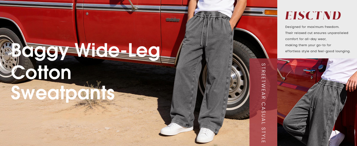 【Comfort & Trend: Baggy Wide-Leg Fit】Experience ultimate ease with the loose-fit, wide-leg silhouette of these men's sweatpants, designed for maximum freedom. Their relaxed cut ensures unparalleled comfort for all-day wear, making them your go-to for effortless style and feel-good lounging.