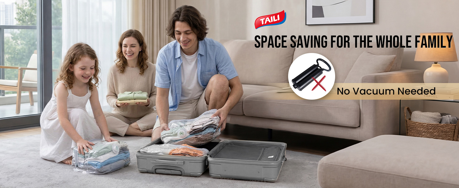 Effortless Hand Compression: Our patented ESY SHRINK air valve makes packing simple—just press with your hands to remove air. No vacuum pump or extra tools needed. Perfect for dorm rooms, apartments, or hotel rooms when you need to pack light or store smart