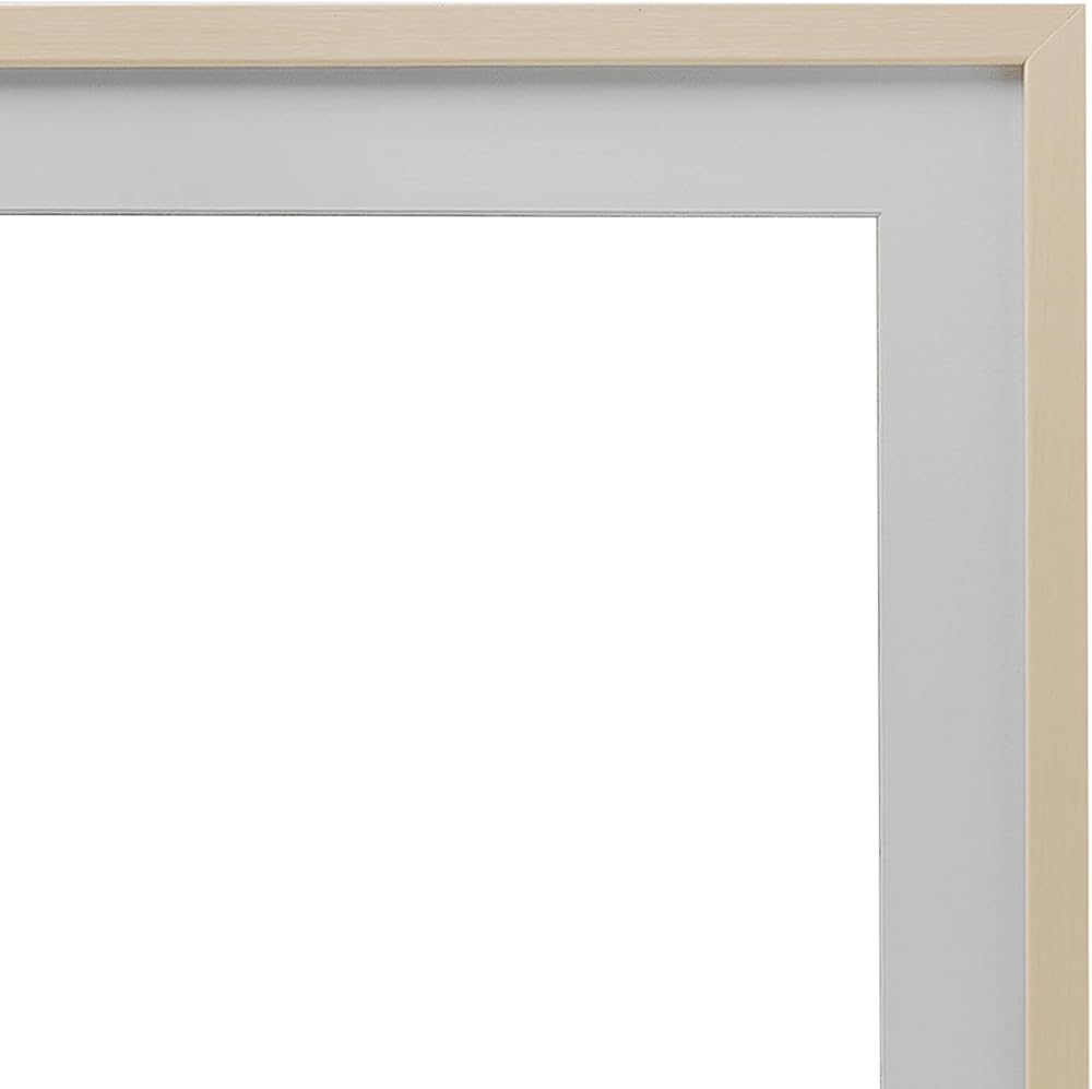 Our Framed Print Under Glass is a modern way to display art with a crisp, clean finish. A digitally printed paper is framed with a white mat under durable PETG plastic. The bevel cut mat is made of paper pulp mat board. The frame is constructed from real wood with a wrapped finish. It includes a pre-installed sawtooth hanger for easy hanging. Available in black, birch, gray and white finishes.