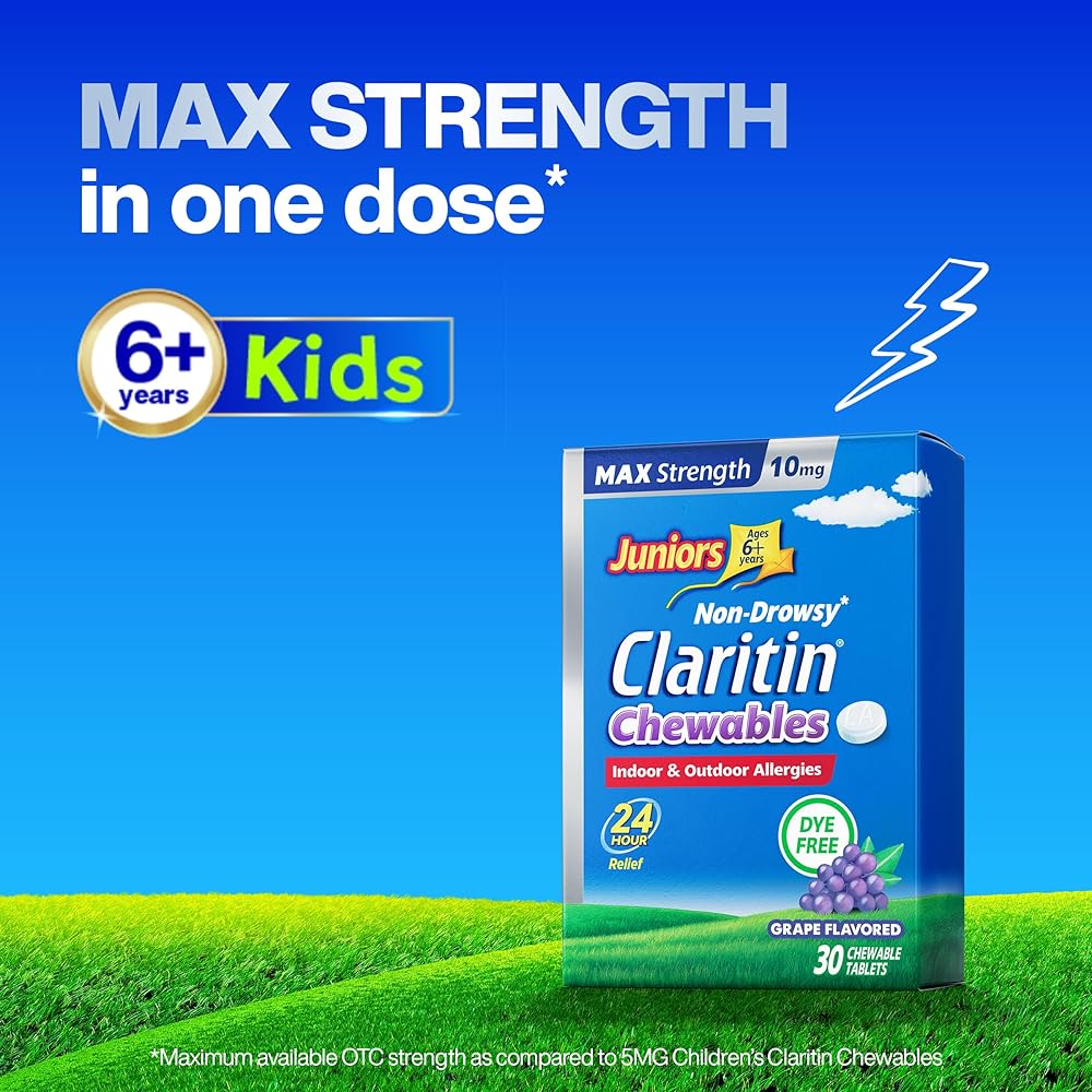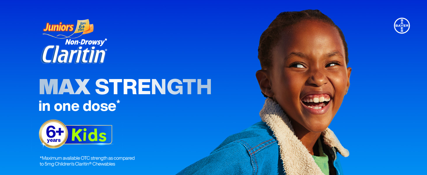 MAXIMUM STRENGTH IN 1 DOSE* FOR KIDS 6+: Claritin Max Strength Chewables for Juniors is the first-ever 10mg Loratadine antihistamine, providing powerful allergy relief in one chewable tablet made for children 6+ years