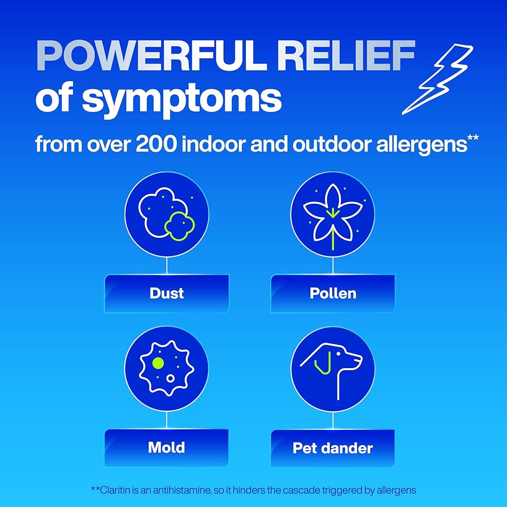 YEAR-ROUND ALLERGY RELIEF: Powerful relief of symptoms from over 200 indoor and outdoor allergens, including dust, mold, pollen, and pet dander**